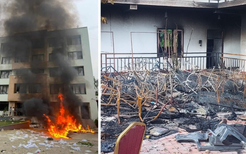 केपी ओली र कृष्णबहादुर महराको नाममा जलाइएका दाङका दुई होटल